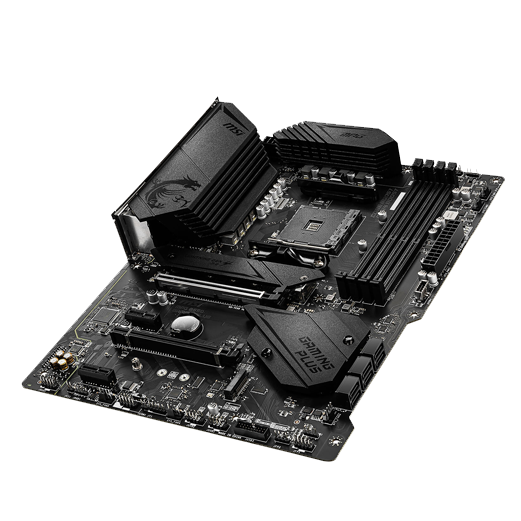 Chipset: AMD B550 Processor Support: Compatible with 3rd Gen AMD Ryzen processors and future Ryzen processors (with BIOS update) Memory Support: Dual channel DDR4 up to 128GB (up to 4400 MHz) Game Experience: PCIe 4.0, Lightning Gen 4 M.2 with M.2 Shield Frozr, AMD Turbo USB 3.2 Gen 2 RGB Lighting: Mystic Light RGB LED lighting with extendable pin headers, supporting 16.8 million colors and 29 effects Audio: Audio Boost for studio-grade sound quality and immersive gaming Cooling: Extended heatsink with additional choke thermal pad rated for 7W/mk and 2oz thickened copper PCB for improved thermal performance Convenience: Pre-installed I/O shielding for easy installation and protection from electrostatic discharge