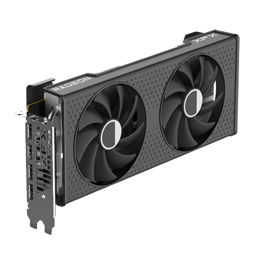 Performance: Clock Speed: Boostable up to 2655 MHz for enhanced performance in demanding gaming and computing tasks. Architecture: Built on AMD’s latest RDNA 3 Architecture, which improves power efficiency and performance, making it a strong contender in modern gaming and rendering tasks. Stream Processors: Equipped with 2048 Stream Processors, offering powerful computing capabilities for high-end gaming, video rendering, and multitasking. Memory: Features 8GB of GDDR6 VRAM, allowing for smooth 1440p gaming, streaming, and other high-performance applications. Memory Speed: With 17.5 Gb/s Memory Speed, this card ensures fast data transfer for smoother and more responsive gameplay. Memory Interface: The 128-bit memory interface optimizes memory bandwidth and performance, offering a good balance of speed and efficiency. Connectivity: Display Outputs: Comes with HDMI 2.1 and DisplayPort 2.1 ports, providing support for high refresh rates, 4K resolution, and future-proofing for next-gen monitors and displays. Interface: PCIe 4.0 Interface, which ensures faster communication between the graphics card and the rest of the system, taking full advantage of the latest motherboard capabilities. Cooling: Dual Fan Cooler: Ensures efficient cooling during extended gaming sessions, keeping the GPU temperature within optimal levels.